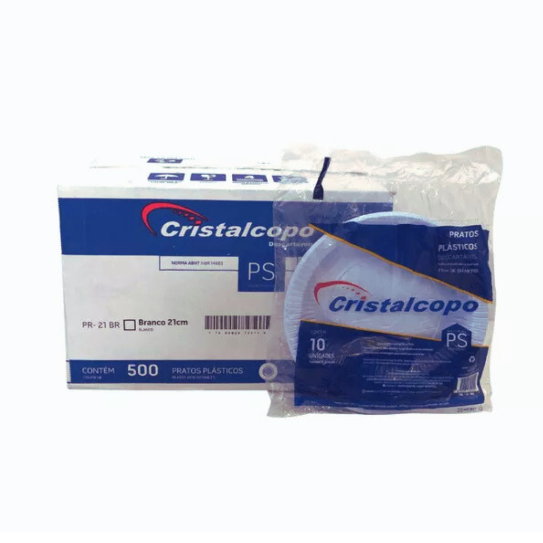 Prato Descartável 21cm Raso Cristalcopo cx/50x10un