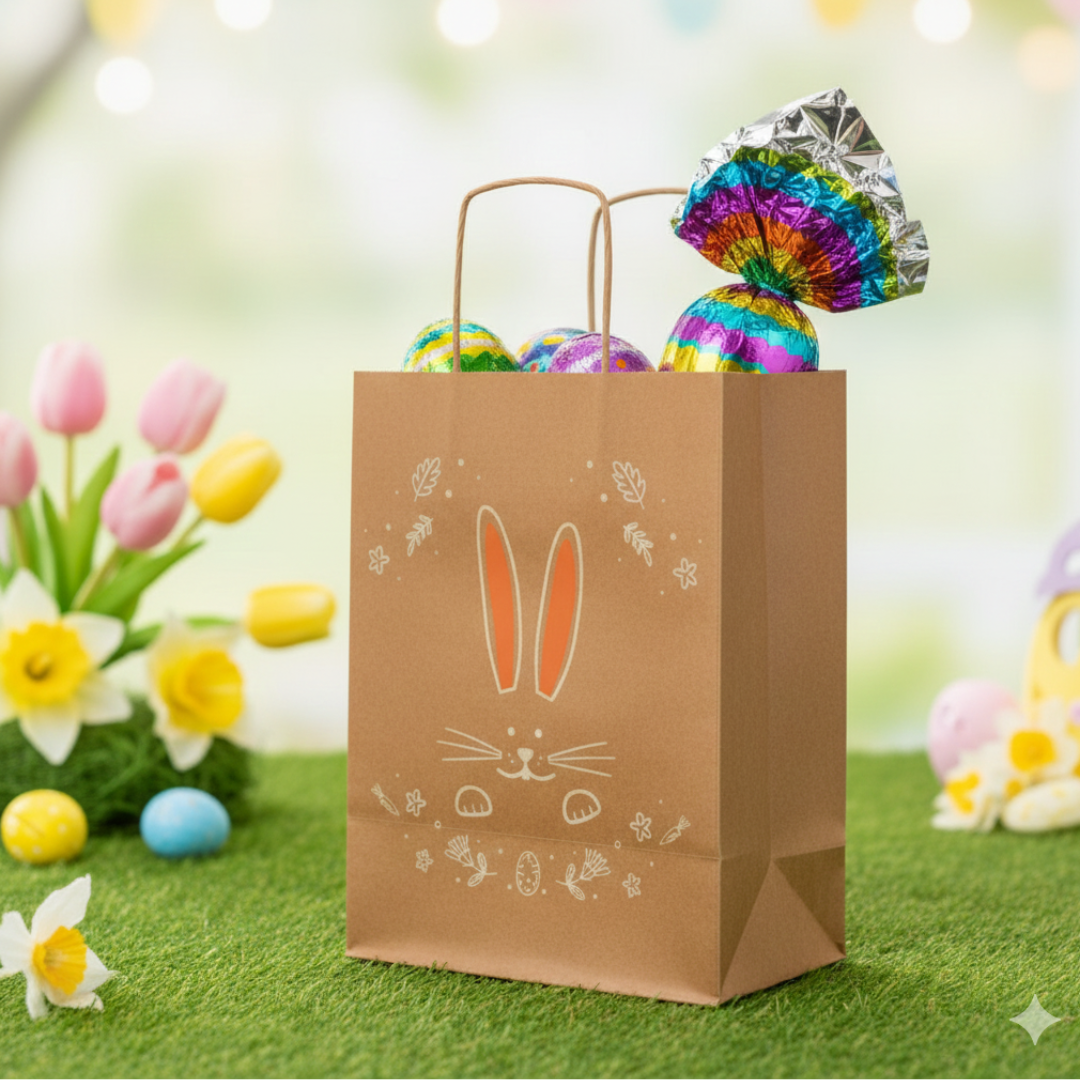 A páscoa está chegando, e com ela, todas as emoções e alegria desse momento mágico. Por isso, essa linda sacola com ajuda você a apresentar muito melhor seu produto, trazendo uma abordagem mais gourmet. Ela é de ótima qualidade e resistência. Ideal para presentear as pessoas, ou armazenar as delícias do seu negócio.